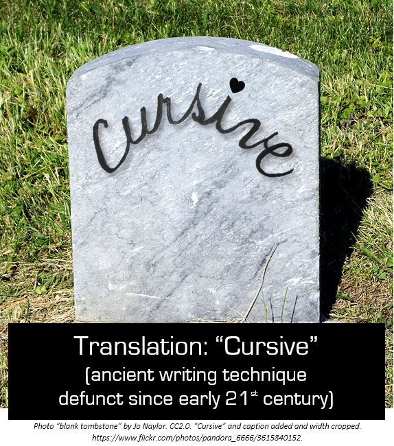 Here dies cursive writing. Long live cursive reading.